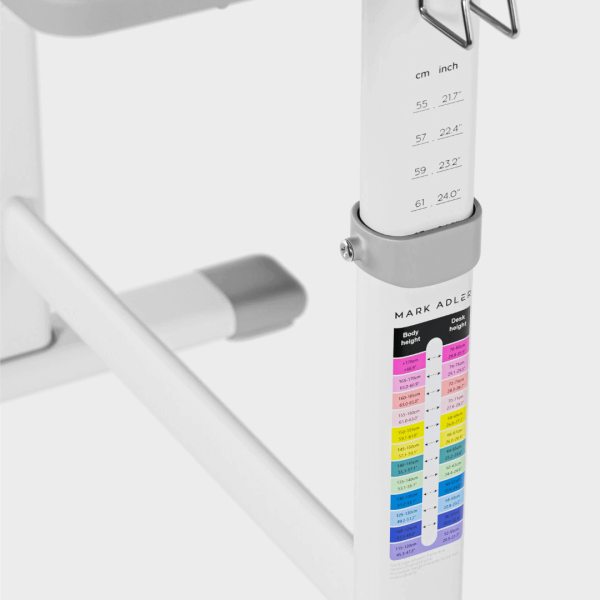 - Zahvaljujući mogućnosti podešavanja visine stola, deca mogu uvek sedeti pravilno dok uče, crtaju ili pišu domaće zadatke. Skala sa različitim bojama će olakšati podešavanje visine stola.