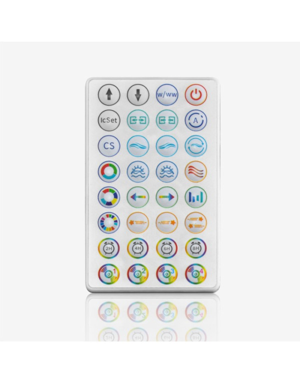 Uz sto se dobija i daljinski upravljač pomoću koga se može upravljati RGB Led osvetljenjem. Uz pomoć daljinskog upravljača možete izabrati boje i posebne RGB efekte, brzinu kao i boju osvetljenja. Kada ne želite da koristite osvetljenje, jednostavno ga isključite pomoću daljinskog upravljača.