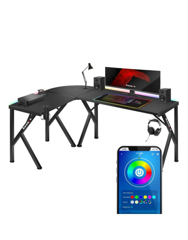 Ugaoni radni sto Hero 6.3 RGB, Huzaro Black