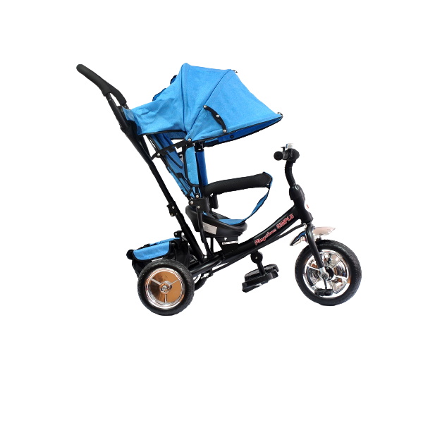 Veoma jaka metalna konstrukcija cini osnovu ovog tricikla-guralice, gabaritnog izgleda cija je duzina oko 90 cm, a visina preko 1m. Plasticni delovi su izradjeni od jake plastike koja je otporna na atmosferske prilike i ne bledi na suncu. Tenda detetu pruža zaštitu od sunca i vetra, a mekano sedište dodatno omogućava bezbednu vožnju za decu mlađeg uzrasta. Tricikl je multifunkcionalan, kako dete raste možete ga prilagoditi tako što ćete ukloniti držač za noge, ručicu za guranje i tendu, i dobijate klasičan tricikl koji će dete moći samostalno da vozi.